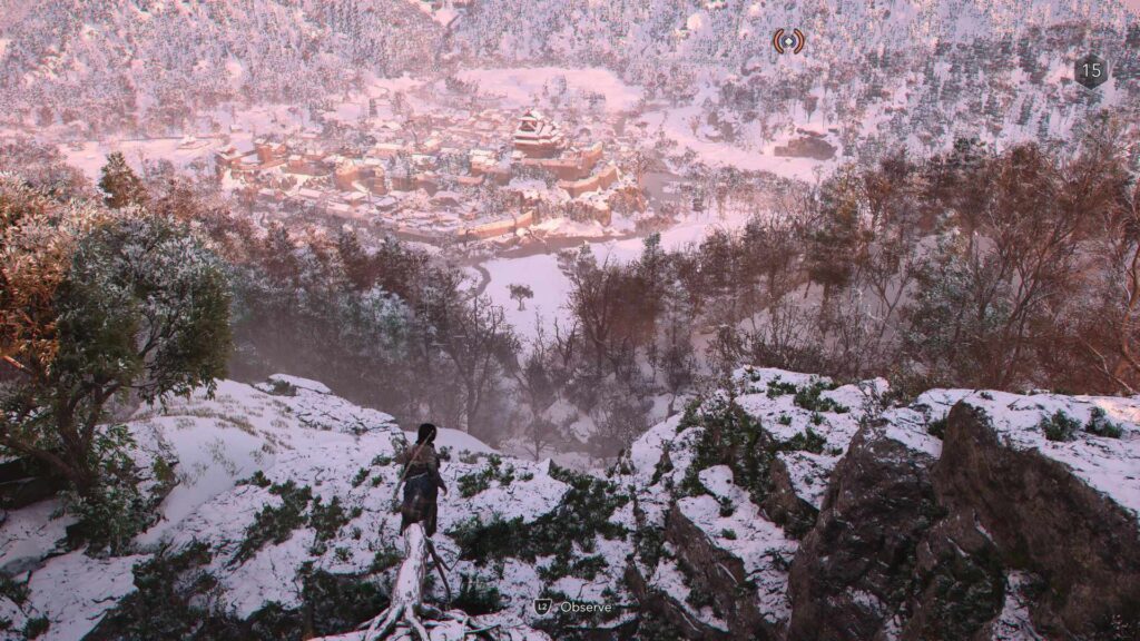 The map of Assassin’s Creed Shadows is also much smaller than the previous game, with the whole map appearing to fit inside the space of Valhalla’s England, before you include the additional map of that game. While you can still find yourself walking a decent distance from point of interest to point of interest, it is far less painful than it previously was. Where it can be annoying is the amount of dense mountains that stand in your way. A clear path can actually involve you going back, backwards, to a new path that leads around the mountain. With your horse, you can pull up a pathfinder to make it easier, yet on foot, you will walk yourself straight into the mountains, and while they are beautiful to look at from afar, they can be blindingly dense up close and this will probably happen a lot as many points are at the top of these mountains, with you going on foot to the place 30 feet away only to realize you should look for a path 500 feet away to begin traveling up the right way.
