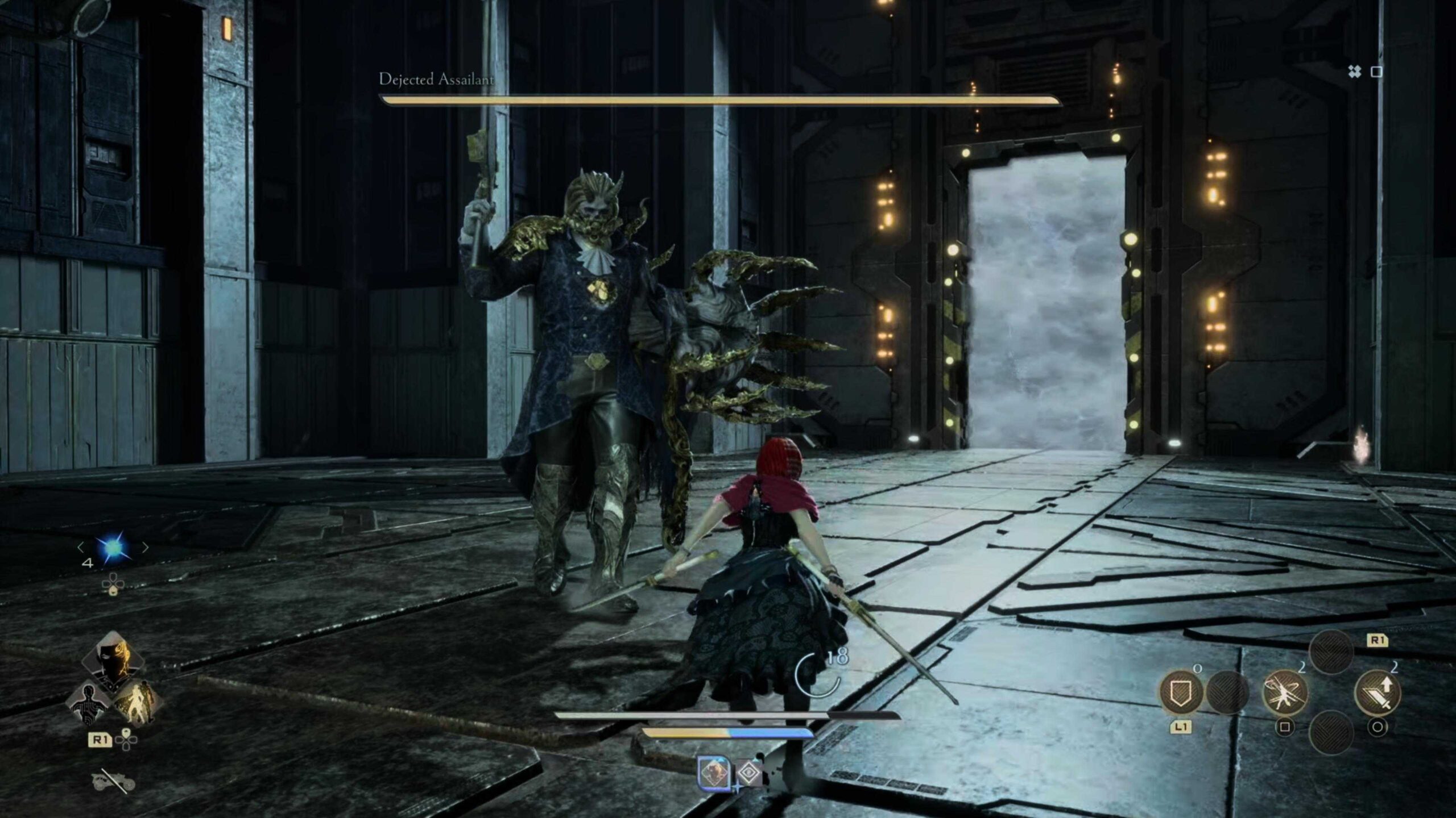 Using the twin blades, I was able to spam my relentless sword dance during these moments to rack up damage. Combine this with Adrenaline for a slight buff to the attack and really deal damage. Be careful, as the sweeping attacks can move the boss out of range so make it a point to stop attacking if they get too far. Around the three-quarter point on its health bar, the Assailant will stop taking damage to let out a yell. Back off, as this can knock you, and you can’t inflict damage anyway and let this happen. Nothing changes after this so continue to black at least semi-defensively until the opening presents itself, usually through the boss turning to attack your partner to press the attack. I found that after combos, hitting a siphon attack to charge your specials before backing off slightly was a good play.