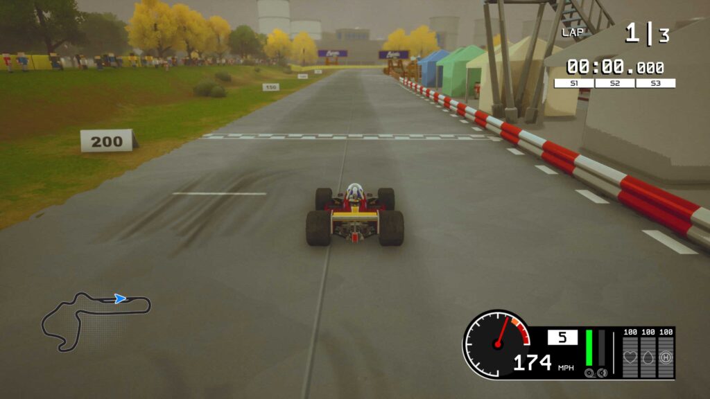 The first thing that hits when playing the game is its art style, which is non-traditional. Games like JDM have come into the indie space with some focus on a realistic element to the display, so the fact that the characters and cars have a chibi form, and the stages are charming and playful, so of course, the first thought is a Formula 1 game that is accessible to all, and a break from intense game I might have been playing. Oh, how wrong I was to think that. This is a sim racer at heart, but even the marketing doesn’t let on just how much.