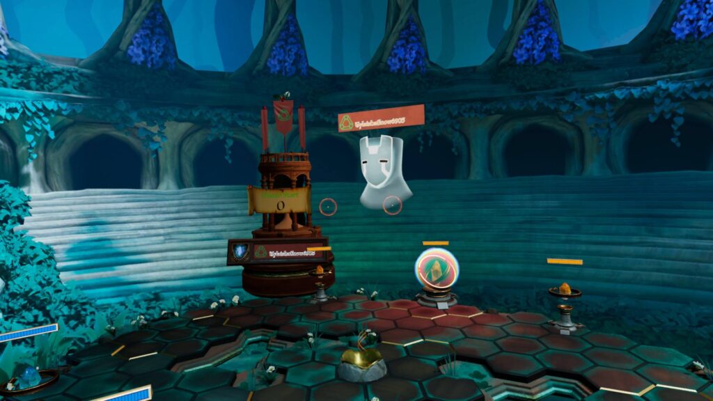 From a beautifully recreated cathedral’s attic, the many options to play Glass, the name of the tabletop game, are laid out. An instantly recognizable gameplay feature is how you interact with the environment. Taking full advantage of the sense of presence given by VR, you can click on each mode, from style to options to matches, that will change the layout in front of you. Smartly using spindles with their according mechanical sounds to choose between the different game modes, champions to put in pedestals, and various skins and unlockables feels very intuitive.