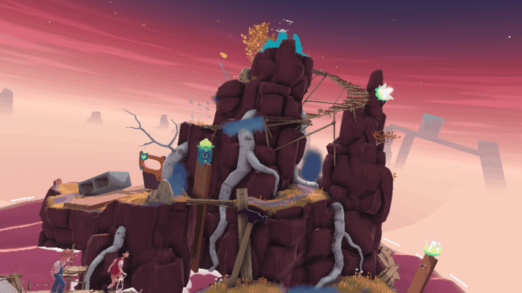 For the uninitiated, the puzzles of Hidden Memories of The Gardens Between work this way: starting from the bottom of a beautifully rendered diorama, you must reach the top with a glowing orb on your lantern to finish each level. The trick is that with every step you take, you manipulate time as well, effectively being able to advance or rewind it at your will. Repeating actions like stepping over a big saw to cut wood and make a new path are among the many little ingenious actions you will need to engage in to solve each puzzle.