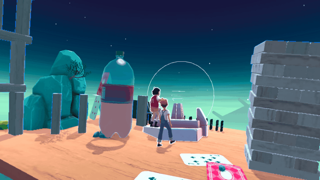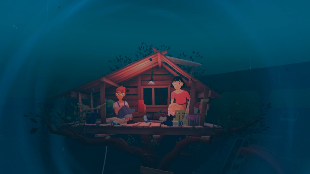 Developed by the same team, The Voxel Agents, the soul of The Gardens Between remains intact and perfectly transposed to VR. A fond memory I remember from the base game’s menu is how it was raining nonstop, and lightning would sometimes strike, lighting up the screen and reverberating through the controller. An adapted sequence in the light narrative elements of this version does it with more impact, as it feels like being huddled up in the treehouse under the rain with the childhood best friend protagonists.