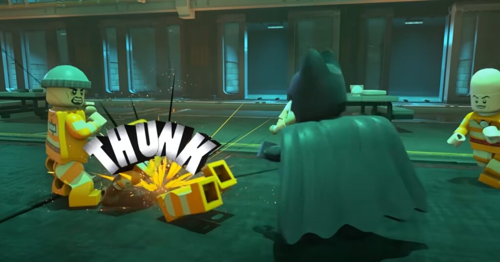 With the main story driven by various games, films, and comics, the gameplay seemingly focuses more on their previous LEGO Batman games and Rocksteady’s Arkham Knight series. Complete with gliding, driving the Batmobile, and versatile combat, LEGO Batman: Legacy of the Dark Knight brings back those key aspects that make Arkham feel like Arkham. To top it off, the classic LEGO spin and comic onomatopoeia adds an extra layer to the game that really makes it pop, especially against its environment’s darker tones.