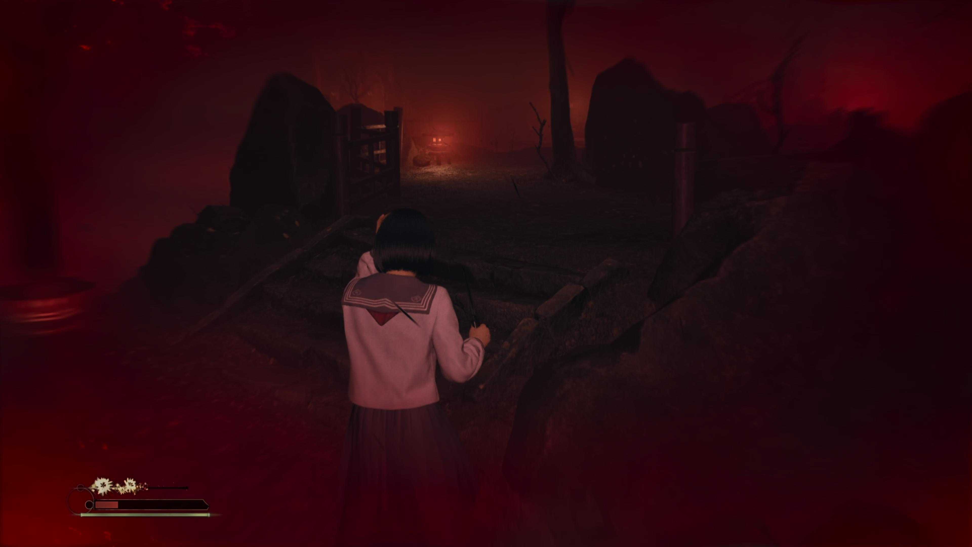 The shrine will have a lock on the door, and if you took the time to check the Ema, you will realize the symbols here are related, so double back to the fence via a path on the left across wooden planks to a gate that was locked on that side. When arriving, Hinako will notice a doll sitting on the shrine that, when looked at, triggers the appearance of a nasty enemy. Their move set primarily consists of swiping at you, which can reach a large distance across the swipes, as well as raising up and bringing the full weight of their hands down on you, which can deal a lot of damage. You will fight him with the Kaiken, since that is the only weapon you have, and while it is swift, it doesn’t hit for a lot. Also, keep in mind that stamina management can be a real concern, so dodging unnecessarily can put you right under its fists with nowhere to go. The best strategy is to play defense until you can counter, which requires you to attack with a heavy attack when the monster flashes red briefly, which it does with its ground pound move. This allowed me to clear them in two moves, with the opening created allowing for a flurry of slashes to follow up.