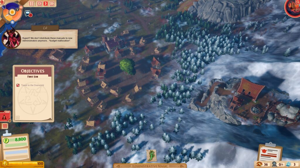 Managing the Humus traversing the fires of hell isn’t the only thing you do, as all these buildings need people, or should I say Imps, to run them. You can hire from three categories for the structures you create, and you need to pay them, as well as create paths for them, as well as private rooms, like a restroom that they can use. Not all of these things felt useful, though. The game teaches you how to create a ticket booth, for instance, to control the flow of the dead. Once I used this in free use, it felt like it caused massive pile-ups rather than reduced issues. You are given a way to speed up Imps on break or doing something, but in certain cases, this becomes a frustration because Imps, like the ticket booth, seem to need prodding every two seconds, a frustrating endeavor.