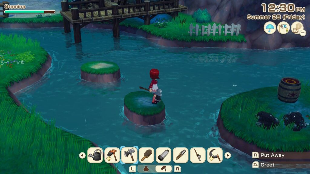 Your mining journey starts when Lloyd arrives at your farm during the tutorial and gives you the hatchet, a tool that combines the hammer and axe of previous games, though obviously, you will be limited in what you can break. Isaac will arrive at your house on a later date and request that you use the tool to help him gather materials to repair the red windmill on the farm, which will unlock the first tool upgrades you can get, which we have a full guide for as well. Then, the best use of time is to progress in the narrative by upgrading stalls and improving the Bazaar until you unlock the forest area that is close to the entrance of your farm.