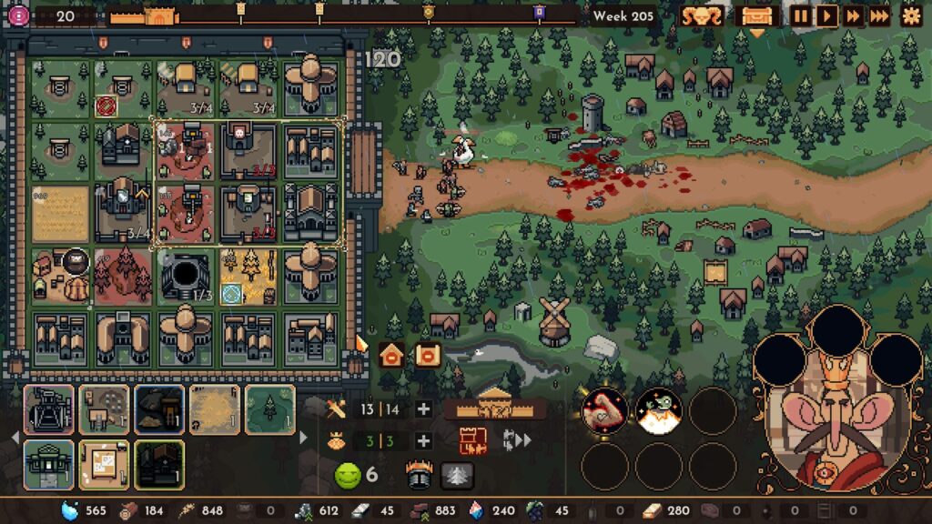 Combat in The King Is Watching is played out much more independently of the player, with the gaze of the king only needed when you are lacking in troops and need to respawn some. There is a massive amount of variety here, from giant mushroom people and skeletons to archers and swordsmen. These characters do have some pros and cons versus the various enemies, so planning ahead is a must. To do this, the player actually gets to set the waves of enemies they will have to fight over the next block of time. This, like everything in the game, gives a significant amount of control for the player to decide how much they are willing to risk for the chance of great gain. There are inevitable fights you can take, just to progress, or risk your kingdom on harder rounds that could pay off in the long run, since very challenging boss fights cap off each period.