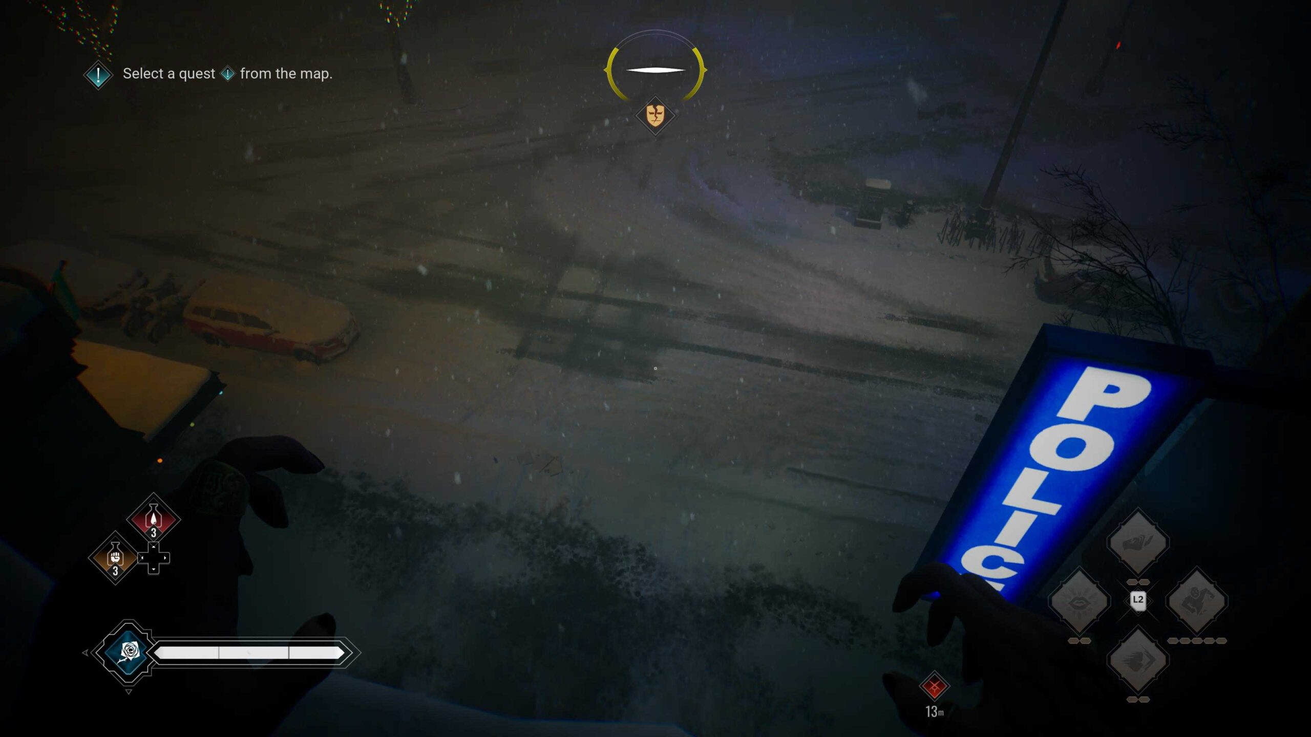 Any action that exposes Vampires, when viewed by an NPC, will be counted as an infraction, not just an act of violence. This includes double jumping, gliding, or even doing your quick dodge move. In this case, double jumping might have a brief effect as you double jump and then land, but a continuous action like gliding can build it up much faster. Throughout the world, police will also walk, indicated by a yellow glow, and committing actions in front of these characters will cause the gauge to fill much faster than a random civilian. There are three levels total to the gauge, starting at green, then yellow, then red. All of this is represented in the top center of the screen, with an eye that represents whether you are visible as well.
