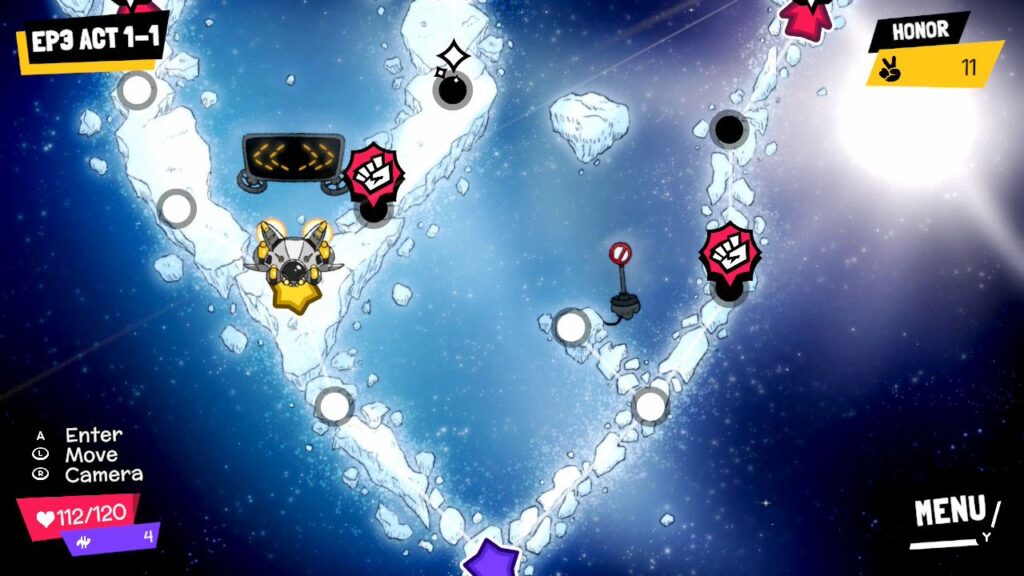 Levels are set on the game board like layouts, though there is no concept of cards or dice that impact your movement, so you can simply explore how you choose to do so. There are multiple paths as well, but no real limit on backtracking, so moving along a second path can be done to collect anything you missed. Ending combat leaves moves on cooldown, so stepping on black spaces can accelerate that, which forms the slight give-and-take in movement, as black spaces turn white as you step on them. Stages have a grading system and can be replayed, with players earning a currency at the end of the stage to level up, and in this, you get the twist on combat as you earn more of the currency for a peaceful finish, trying to injure enemies only to a specific threshold, making truly winning combat a puzzle mixed into the RPG, with neither feeling like it gets lost in the experience.